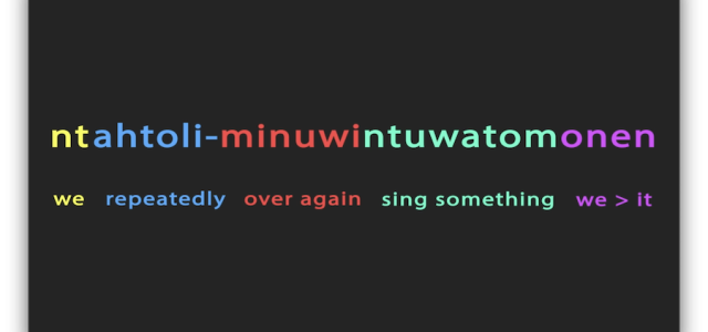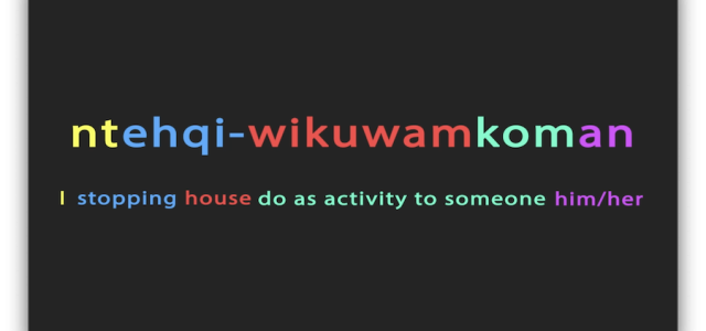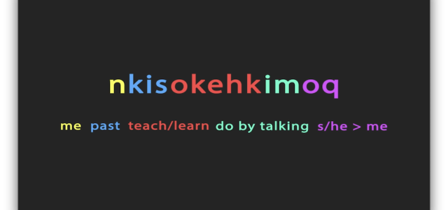 Peskotomuhkati-Wolastoqey words are built from small, meaningful units. Taken together, these units give the word its overall meaning. This is especially true of verbs, which make up the majority of dictionary entries.